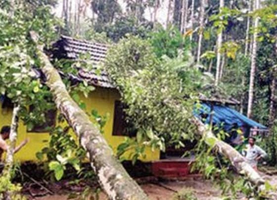 പിറവത്ത് വീടിന് മുകളിൽ 4 മരങ്ങൾ കൂട്ടത്തോടെ കടപുഴകി വീണു